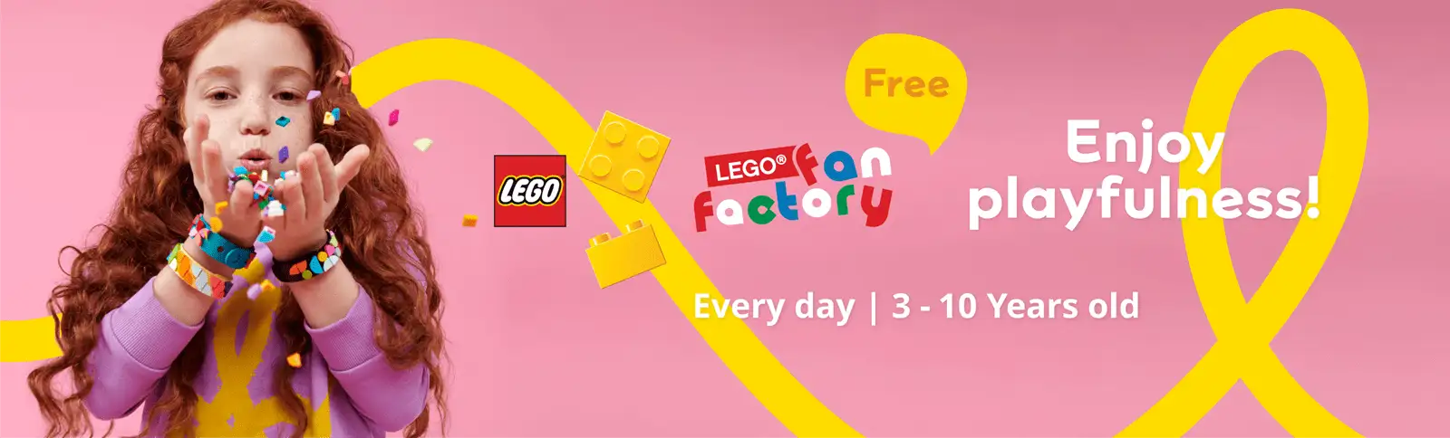 LEGO® Fan Factory is open daily* Children between 3 and 10 years old are allowed free entrance and a maximum permanence time of 2 hours.