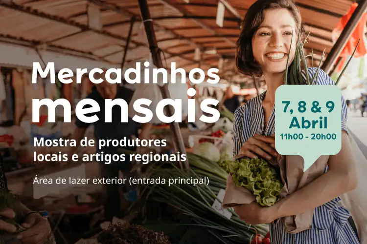 O próximo Mercadinhos - Mostra de produtores locais e artigos regionais - será nos dias 7, 8 e 9 de abril, na área de lazer exterior, das 11h00 às 20h00.