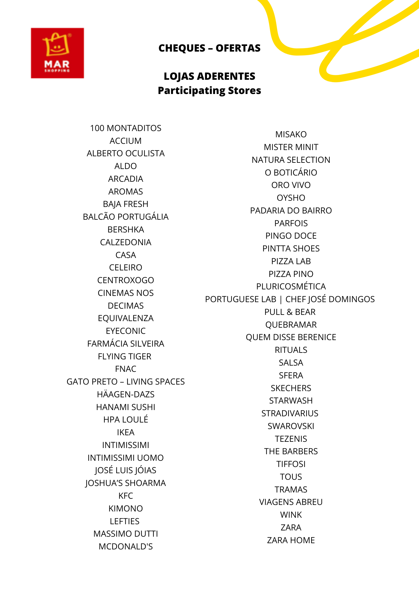 Esta parceria permite aos clientes do nosso shopping usufruir de descontos que podem chegar até 50% em lojas aderentes! Com estas ofertas, o MAR Shopping Algarve pretende continuar a ir ao encontro das necessidades e dos gostos das famílias que nos visitam, e que agora podem continuar a fazer compras nas suas lojas de eleição a preços muito especiais.