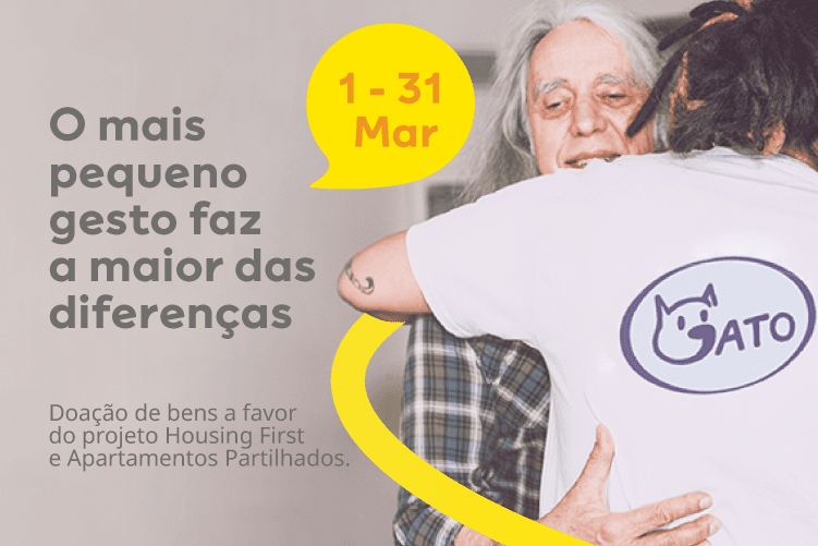 Dinamizámos uma campanha de doação de artigos e equipamentos a favor do projeto Housing First e Apartamentos Partilhados levado a cabo pela Associação G.A.T.O.